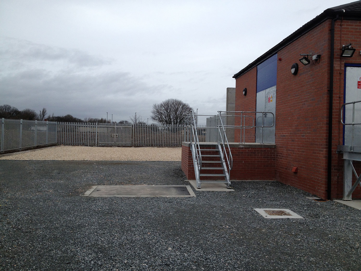 External ducting with cable turning pits, deep surface water drainage, palisade fencing, kerbing macadam, stone and gravel areas completed the works.