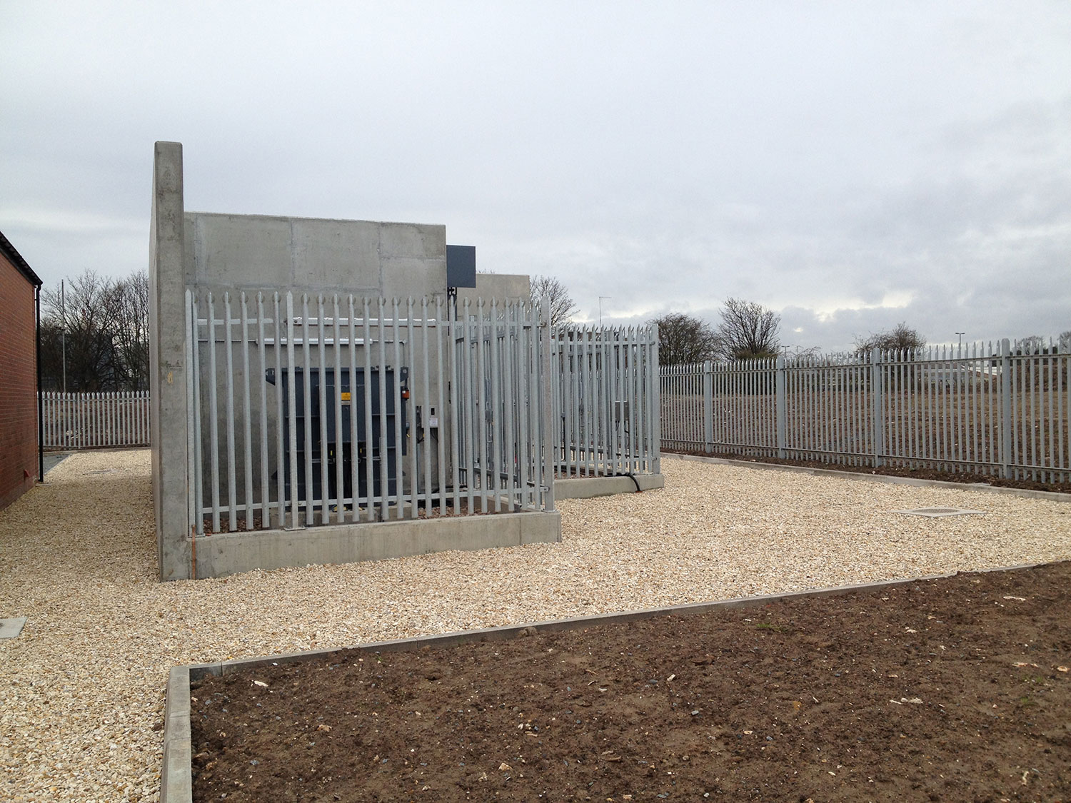 Externally works included the construction of reinforced concrete transformer pens with 4m high blast walls with palisade fencing completing the enclosures.