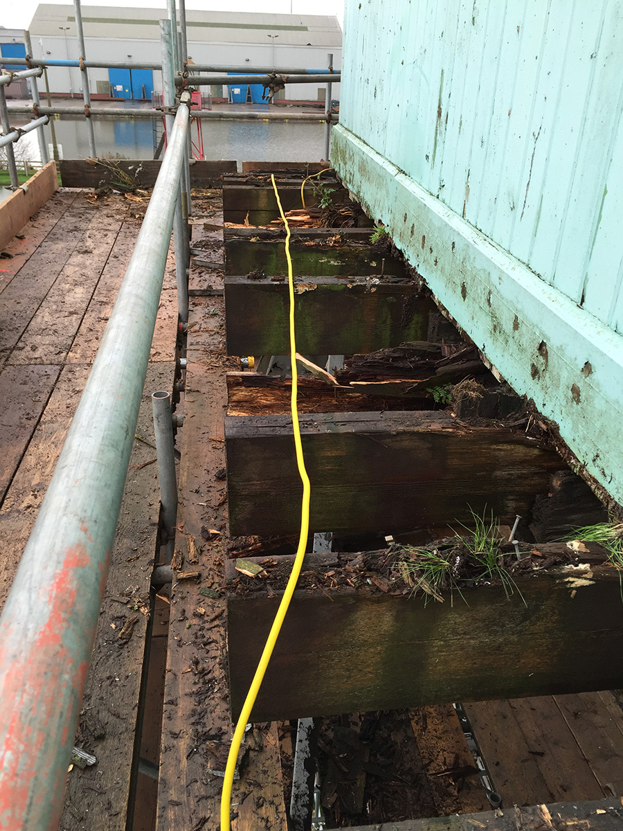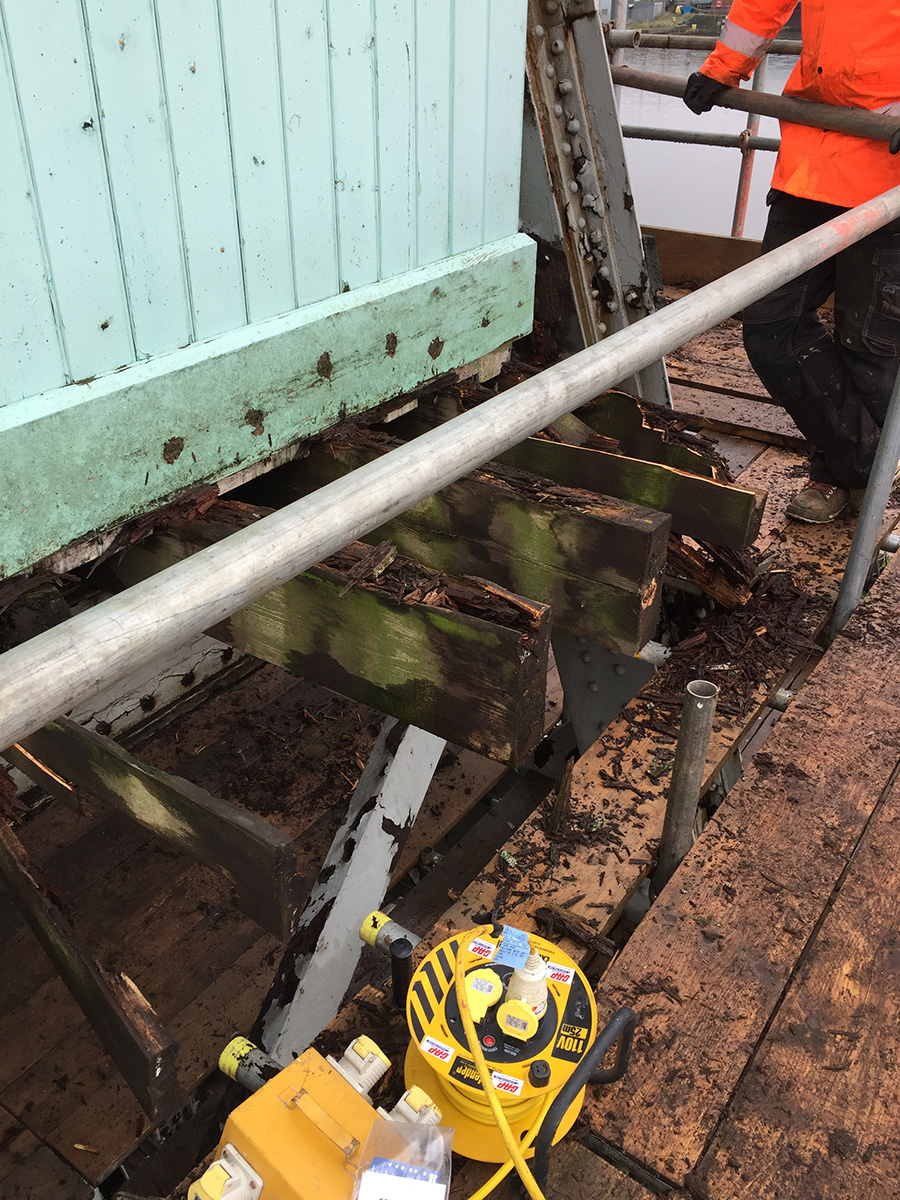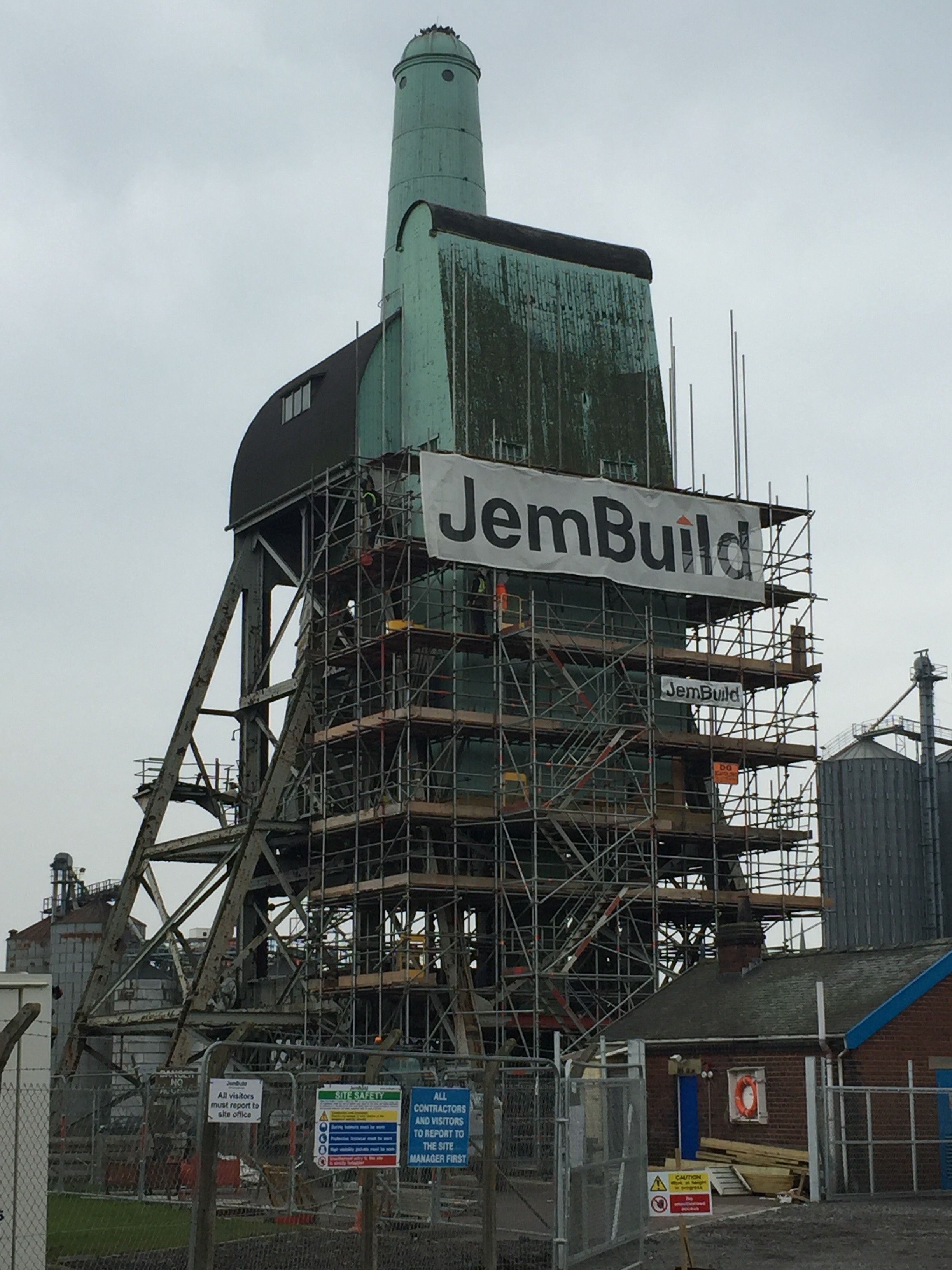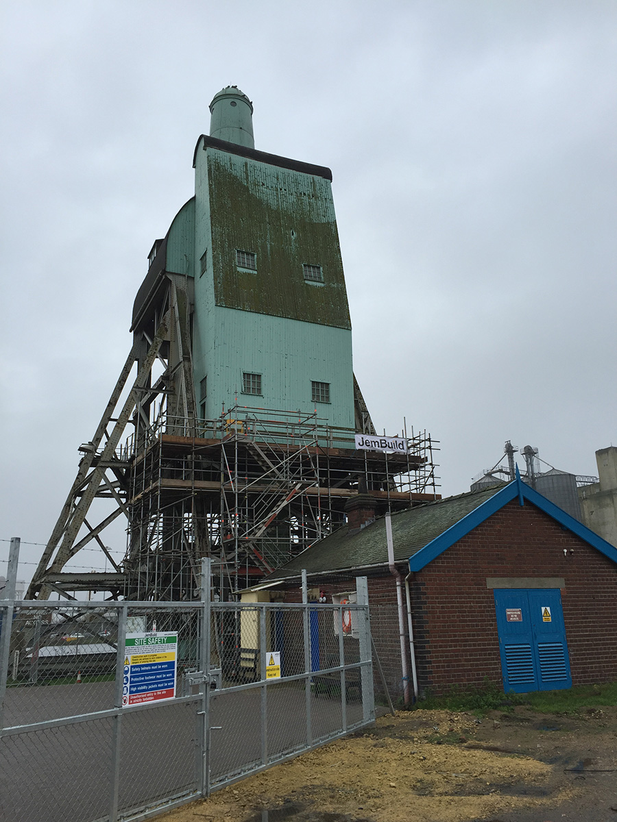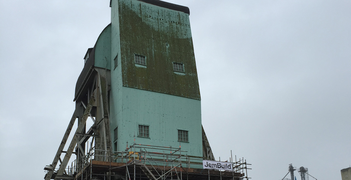 JemBuild are pleased to have been awarded this interesting restoration project in the Port of Goole on this Grade 2 listed Boat Hoist building. Works comprised of an extensive scaffolding design and erection offering access to the 8.5m high platform level to facilitate the removal of existing rotten timber joists, the installation of new timber joists, walkway and handrails. All works carried out utilising traditional joinery methods, including Mortice and Tusk Tenons to the joists and handrails. Works have been monitored by ABP and English Heritage and we are currently awaiting approval to commence with additional cladding and flooring works, which will replace floor joists and floor boards to the 2nd floor within the hoist, some 15m above ground level and also replacement of timber cladding to the inclined façade, approximately 25m high.