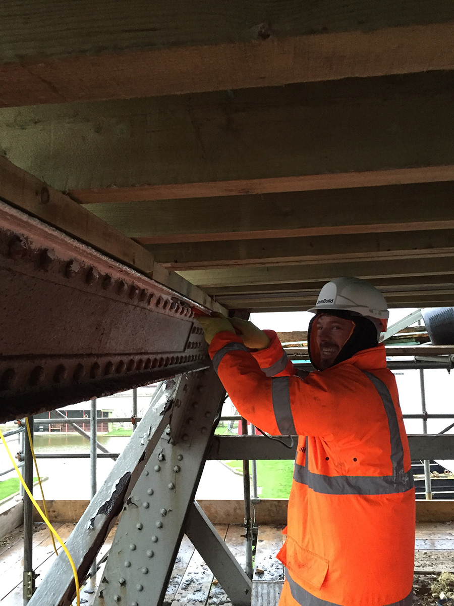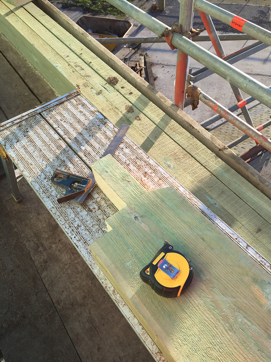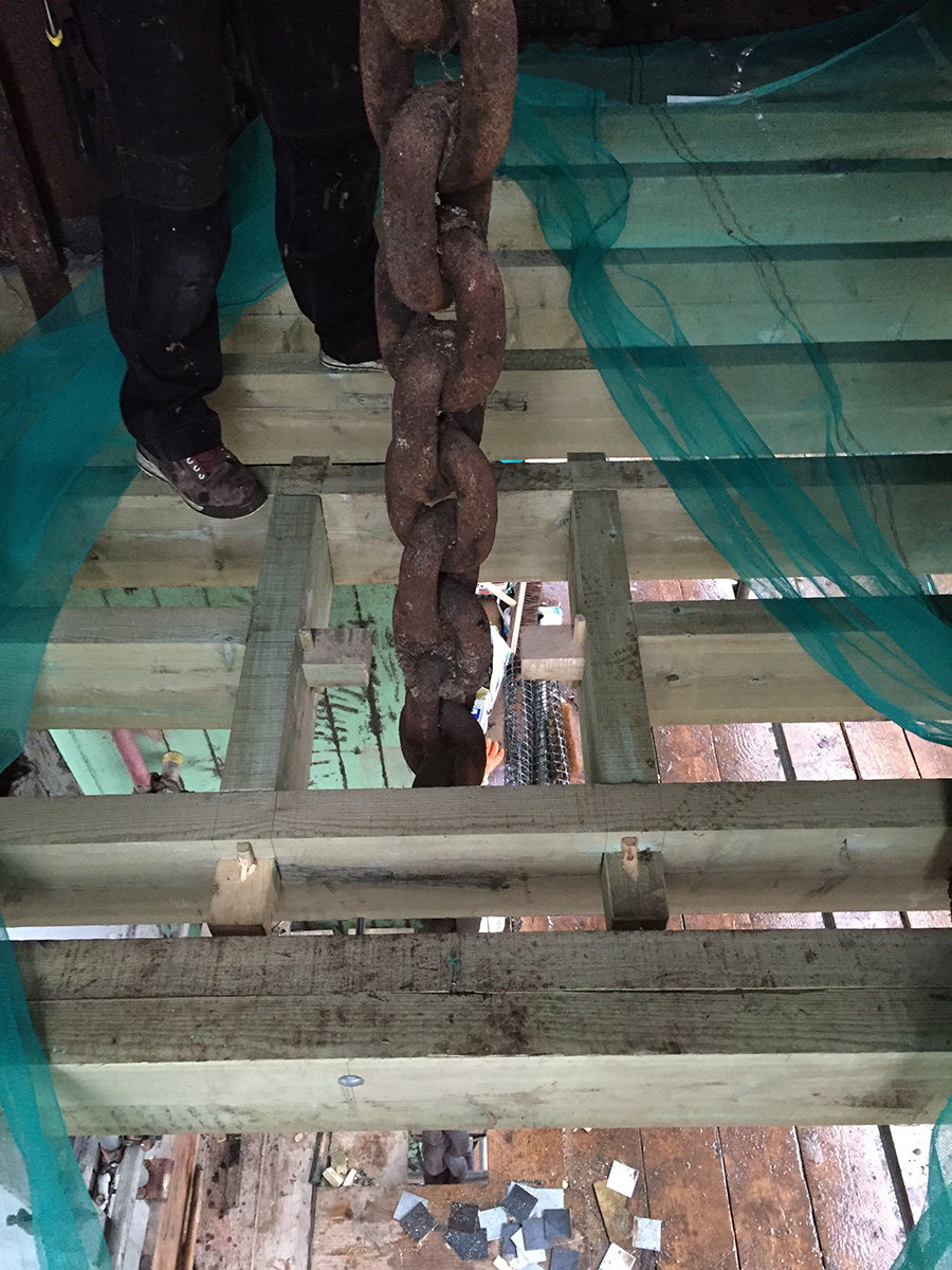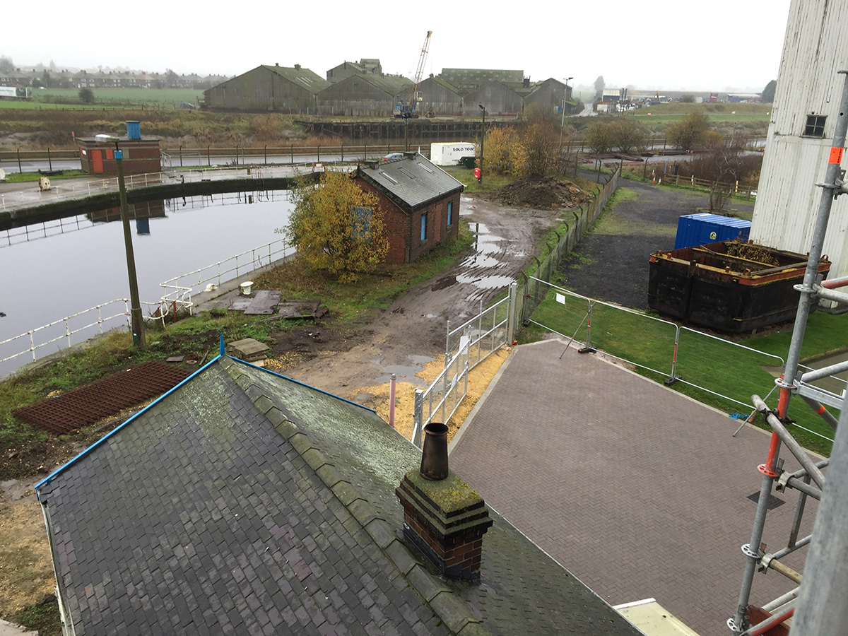 JemBuild are pleased to have been awarded this interesting restoration project in the Port of Goole on this Grade 2 listed Boat Hoist building. Works comprised of an extensive scaffolding design and erection offering access to the 8.5m high platform level to facilitate the removal of existing rotten timber joists, the installation of new timber joists, walkway and handrails. All works carried out utilising traditional joinery methods, including Mortice and Tusk Tenons to the joists and handrails. Works have been monitored by ABP and English Heritage and we are currently awaiting approval to commence with additional cladding and flooring works, which will replace floor joists and floor boards to the 2nd floor within the hoist, some 15m above ground level and also replacement of timber cladding to the inclined façade, approximately 25m high.