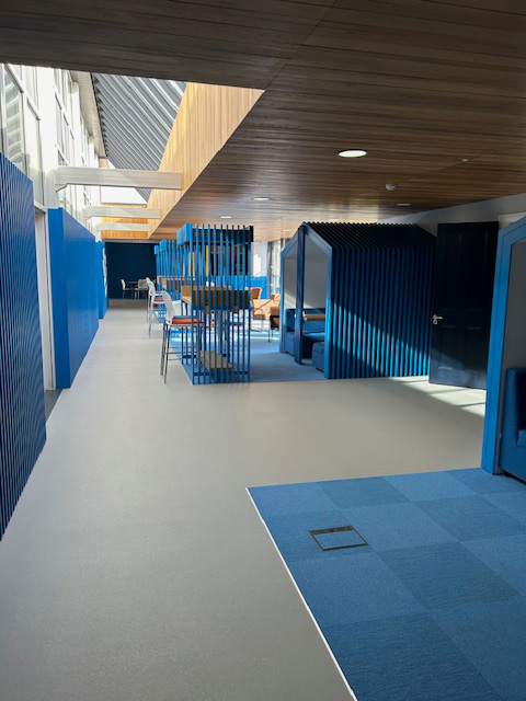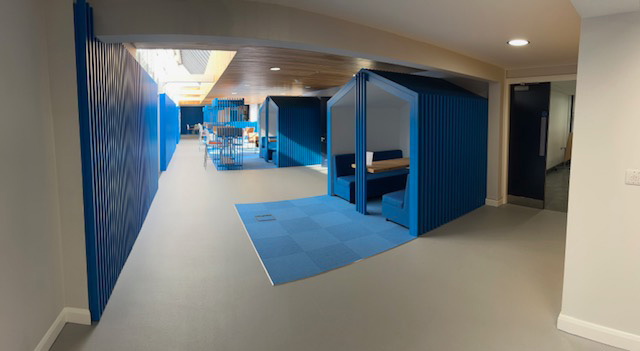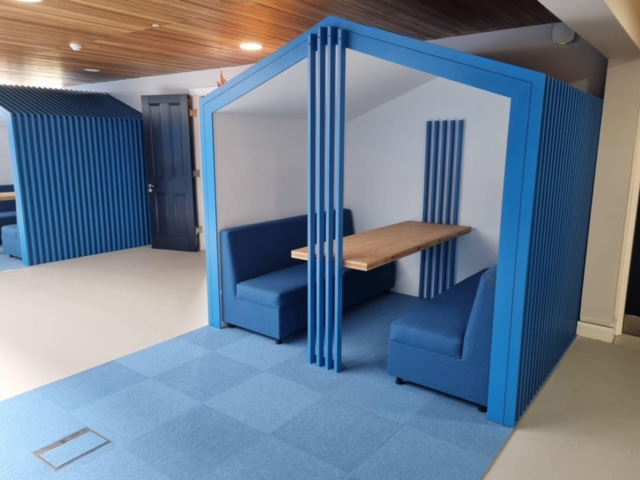 10 years on from our last refurbishment at Centre 4 we have just completed a 10 week fast turnaround project "Welcome Space" refurbishment to provide a new barista, living room, office and open spaces with seating areas, high desks and privacy booths, the theme of the refurbishment was to provide a more homely welcoming feel to the centre for the local community use.